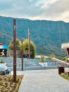 - Révélant une identité propre au village avec des motifs de découpe de mâts rappelant les paysages contrastés formés de laves et de forêts ;