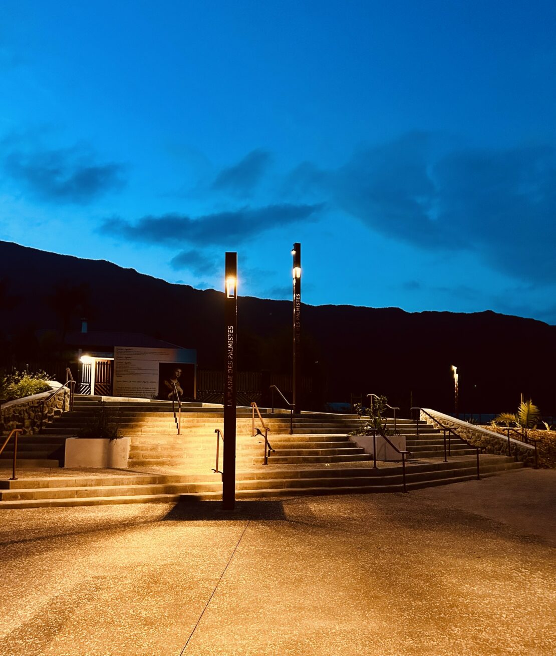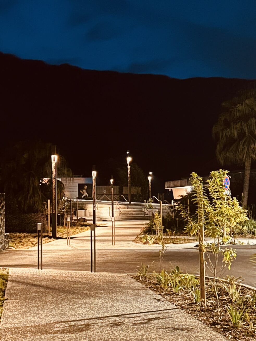 Notre intervention de concepteur lumière intervient ici dans le cadre de la mission de restructuration des espaces publics pour la redynamisation du cœur de ville de La Plaine des Palmistes. Notre équipe de maitrise d’œuvre est constituée des bureaux d’études SODEXI notre mandataire intervenant pour la conception paysagère, BATEC pour la partie VRD, PAMPLEMOUSSE LIGHT pour l’aménagement lumière et MALECOT + BOYER pour la partie Architecture.